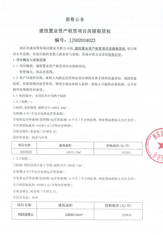 建投置业资产租赁项目房屋租赁权招租公告