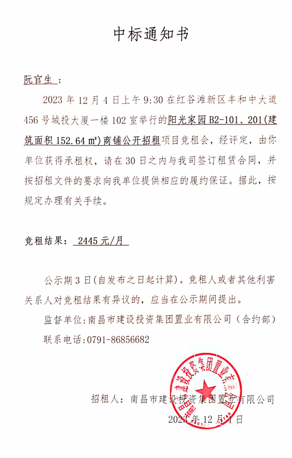 中标通知书(建投置业资产租赁项目(20231102) 12月4日开标 共5份)