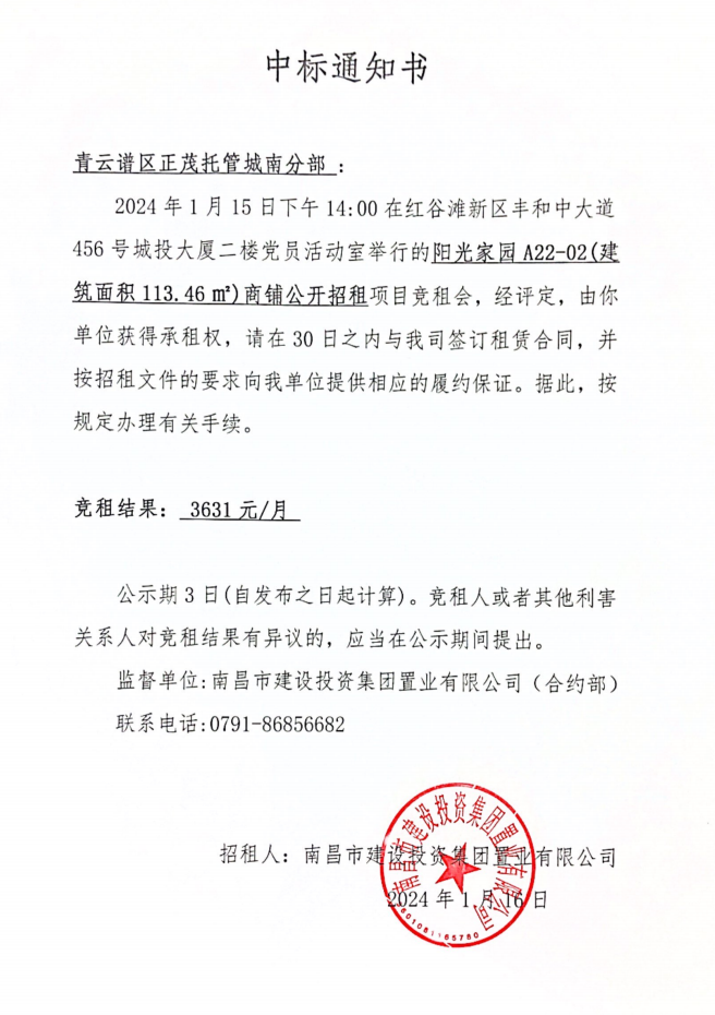 中标通知书