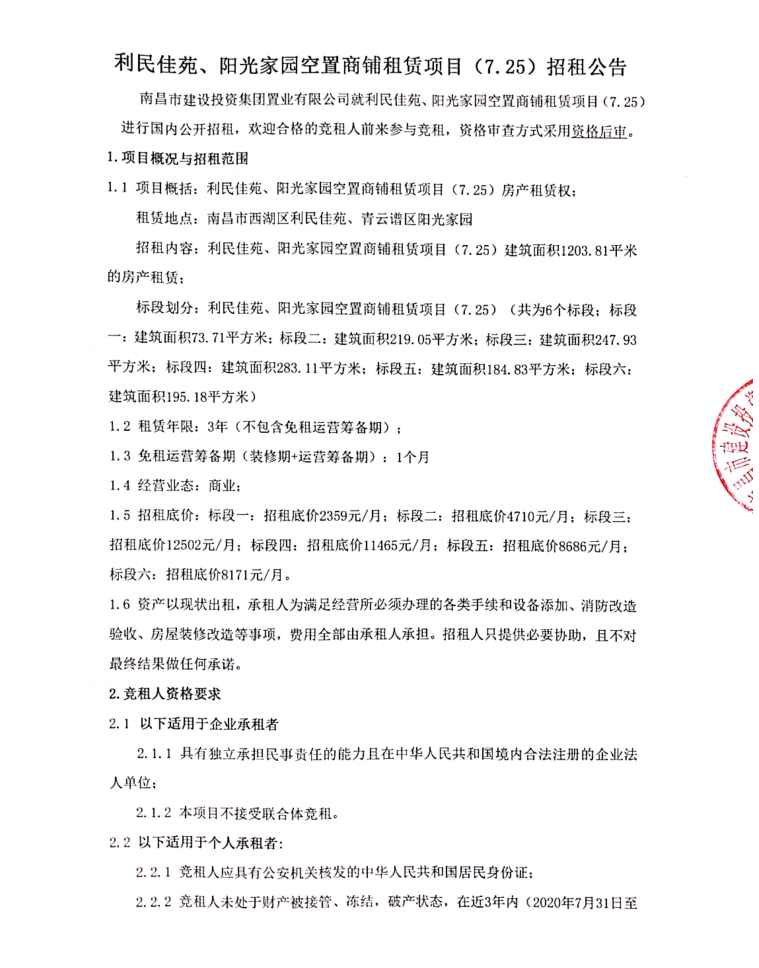 利民佳苑、阳光家园空置商铺租赁项目(7.25)招租公告